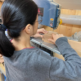 良い線まで来た辺りで、ヒールの側面から見たシェイプをバンドソーで切り出します。このあたりの作業はジョイント加工に入る前に仕上げてしまう方が楽ですが(正直、失敗するかなと思ったので丸々やり直しになる可能性を考慮して※小声)、今回は後回しにしていました。